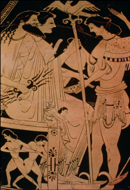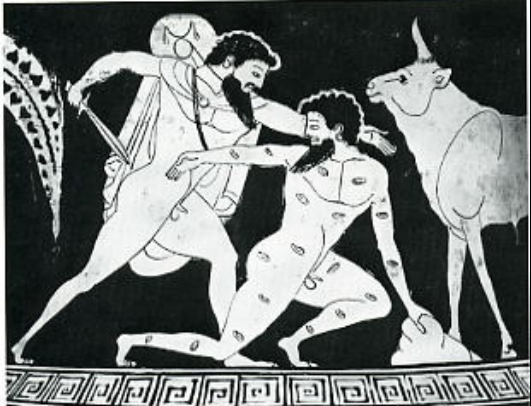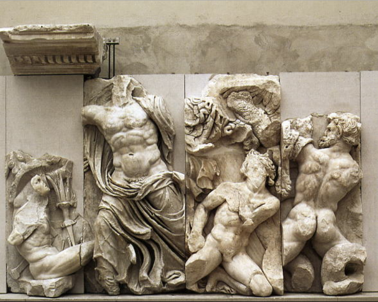 Hephaistos, the divine smith, is operaFng his bellows in the gigantomachy. Detail of frieze from Siphnian Treasury. Ca. 525 BCE.