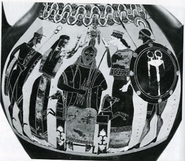 Giants dressed like Hoplites (warriors at the time), helmets, anonymous