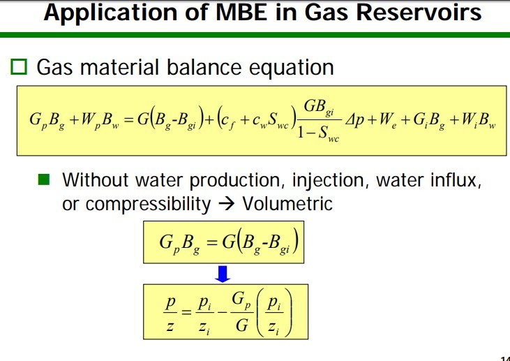 what is the gas material balance equation without water production, injection, water influx, or compressibility