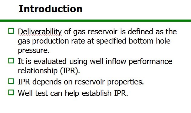 Once a deliverability equation is established using either a theoretical or an empirical equation, it can be used to construct well IPR curve.