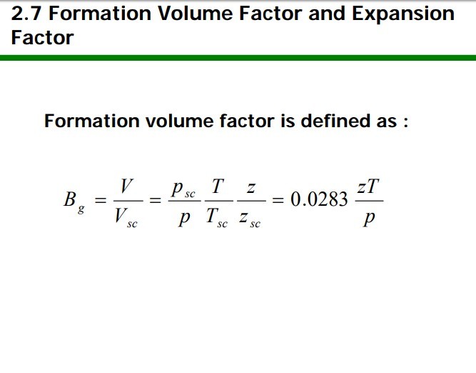 what is the equation for formation volume factor where the unit of formation volume factor is ft 3/scf.