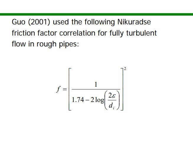 what is Guo’s equation for calculating friction factor for turbulent flow in pipes