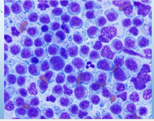 This is a fine needle aspirate of canine gastric wall with a diagnosis of gastric adenocarcinoma.