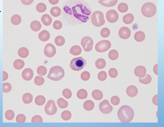 This canine patient has regenerative anemia. List the three features seen on this slide that specifically support the diagnosis of regenerative anemia.