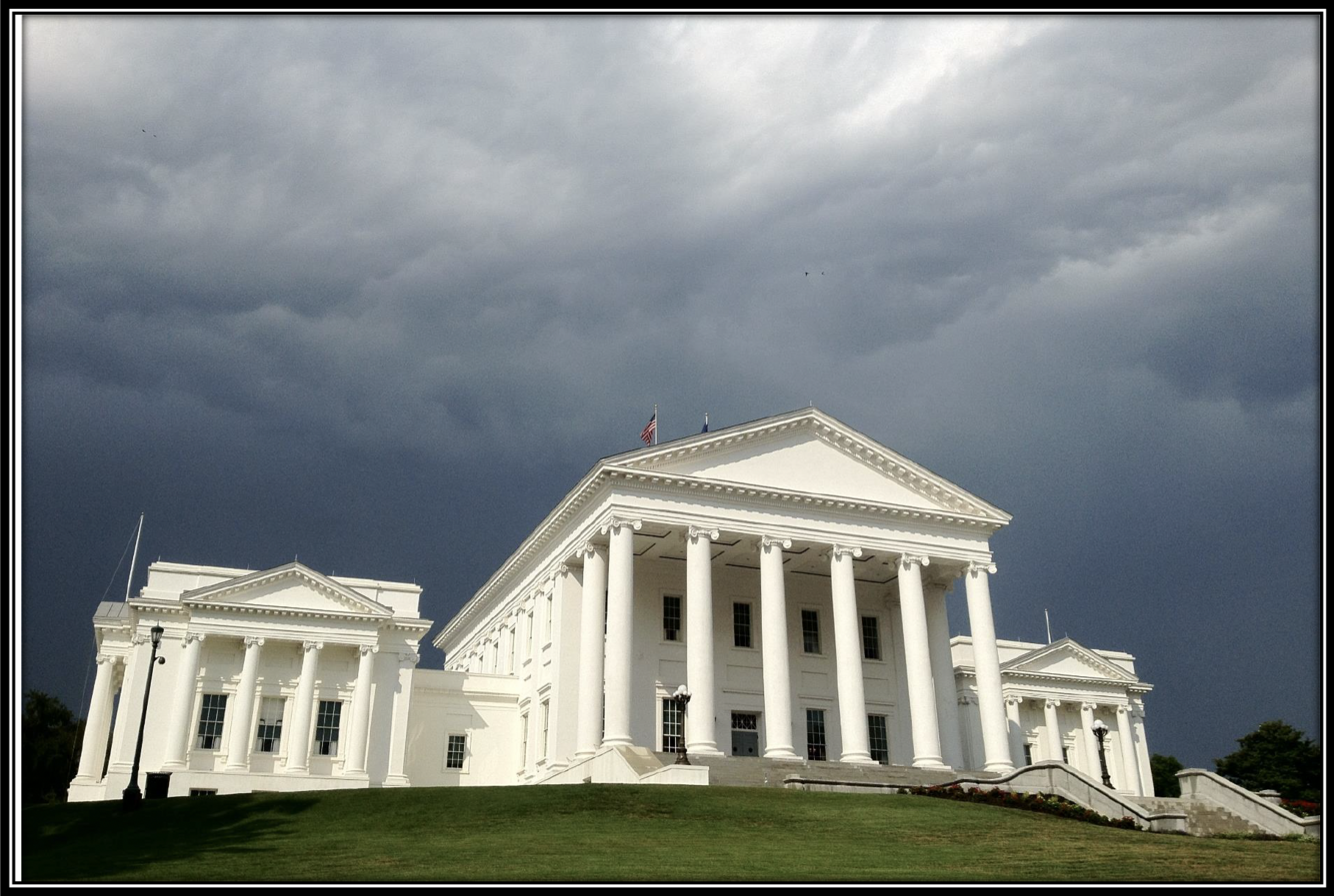 The Virginia State Capitol today, Richmond. The central building was designed by Thomas Jefferson, 1786.