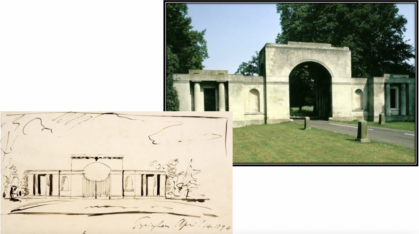 Sir John Soane, Architect. His original sketch for the 1794 Tyringham Gatehouse.