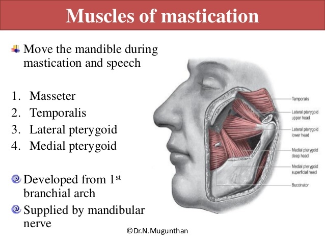 masseters, temporalis, pterygoid muscle