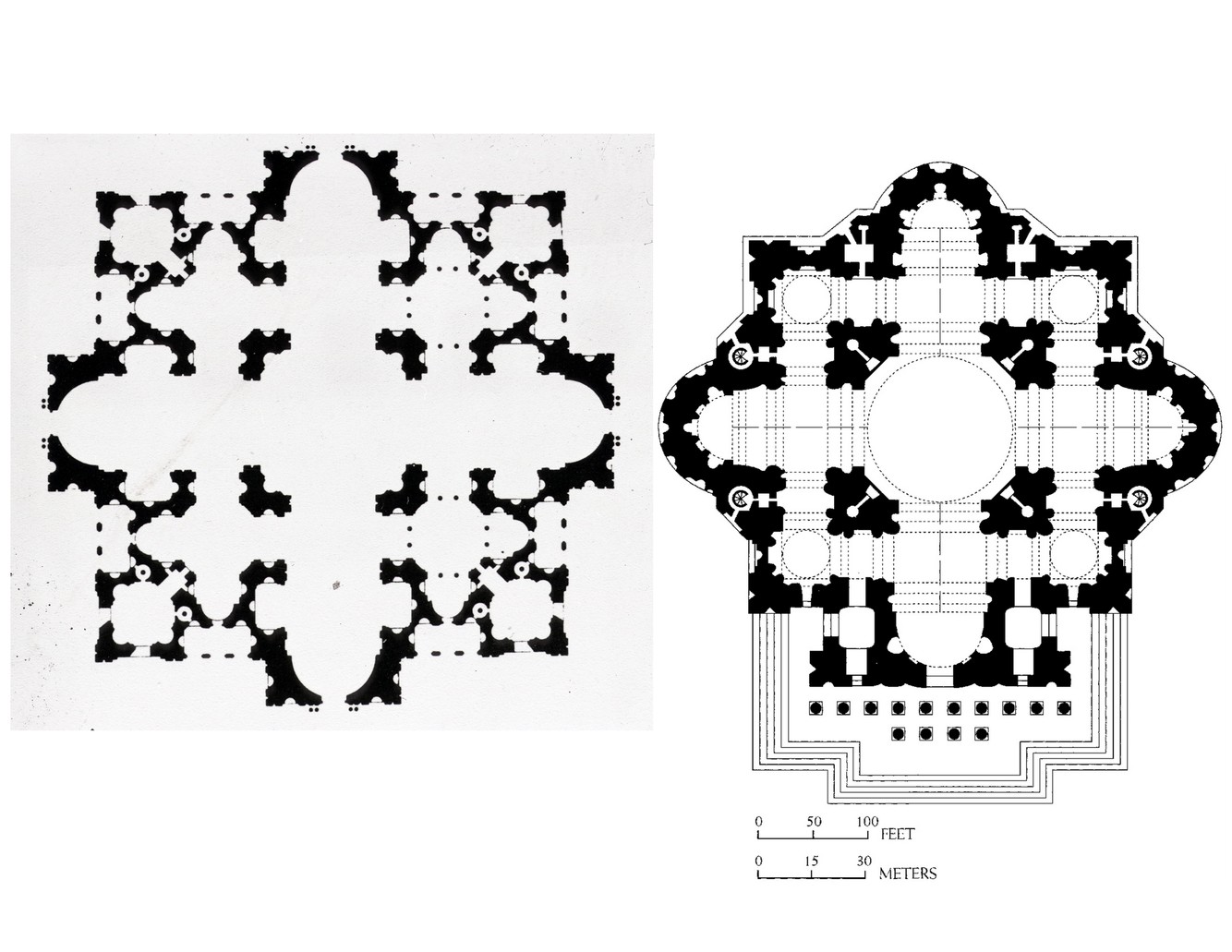 Plan by Giacomo Vignola (right)