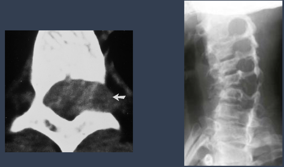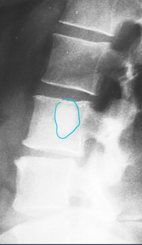 osteoblastic mets (multiple ivory vertebrae), paget disease (cortical thickening, expansion), lymphoma (anterior body scalloping)