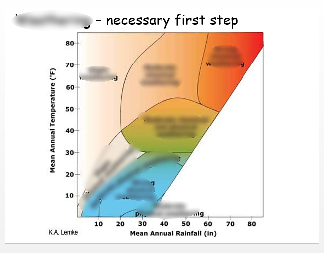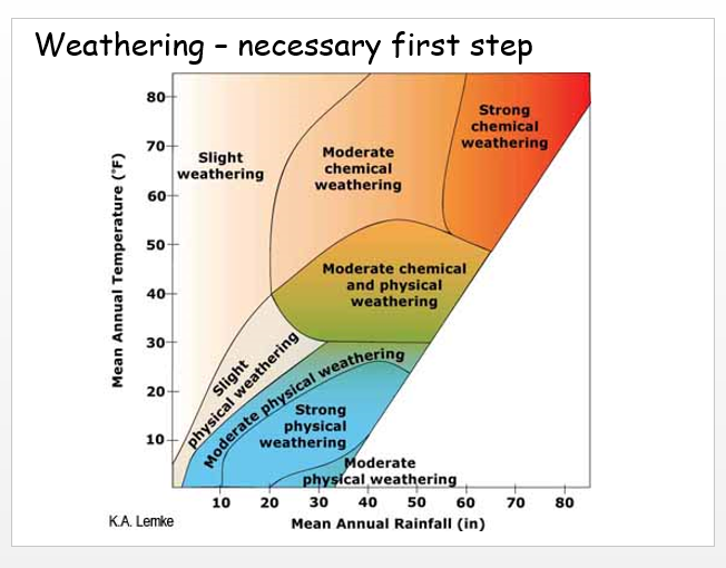 Weathering is a set of processes, both mechanical/physical and chemical, that result in the breakdown of rocks into smaller and less resistance pieces, or new and less resistant materials. The soil is a layer of heavily weathered rock and broken down organic matter that contains many minerals and nutrients important for the growth of plant life.