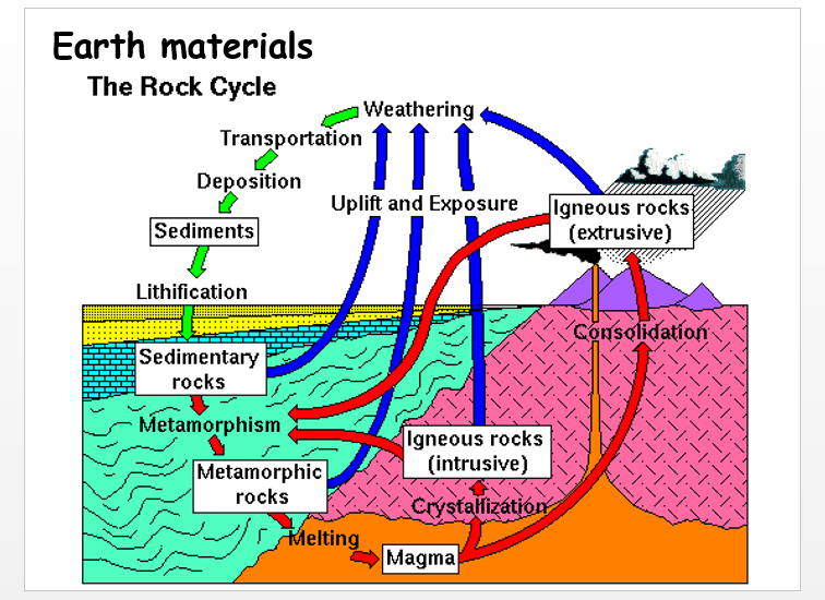What kinds of rocks are there? (The rock cycle.) What is the definition of a mineral? (A chemical species that forms in rock under certain conditions, and which it is often desirable to extract and isolate.)