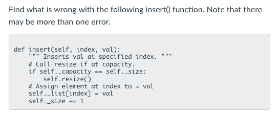 When the array is full, the current size equals the capacity. We must then call resize() to increase the array capacity
