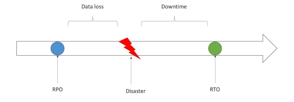 The recovery time objective (RTO) is the targeted duration of time between the event of failure and the point where operations resume.