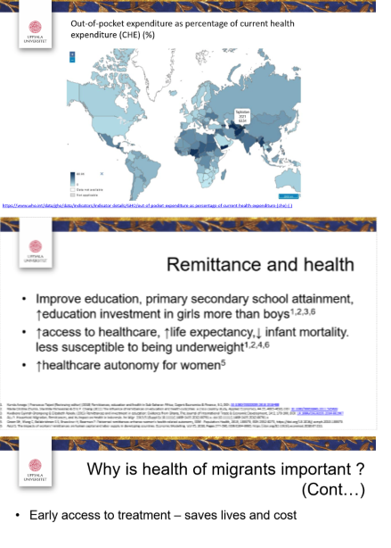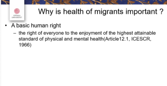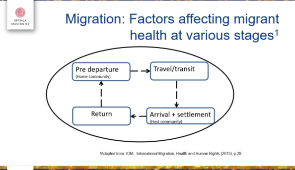 - Tillgången på vård efter resan påverkar här migrantens hälsa. Har man rätt till vård (legal barriers)? Vilket hälsosystem finns? Finns akut vård?