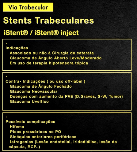 o local de introdução do istent é na regiao do pigmentado e nao pigmentado, onde apresenta logo posteriormente o canal de Schlem.
