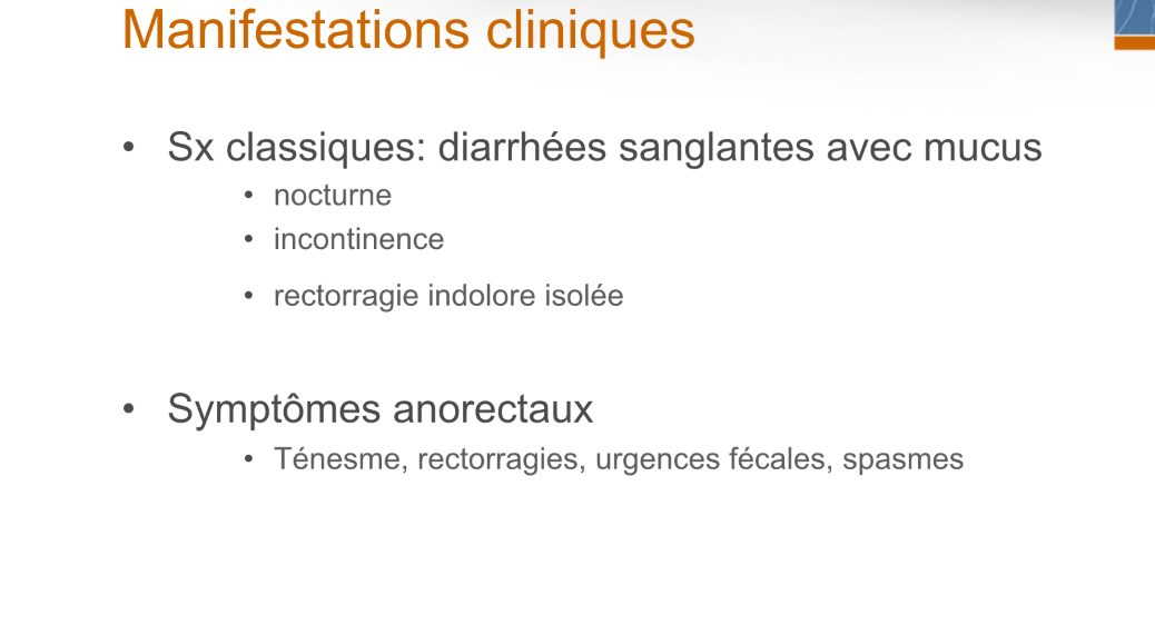 quelles sont les manifestations cliniques de la colite ulcéreuse?