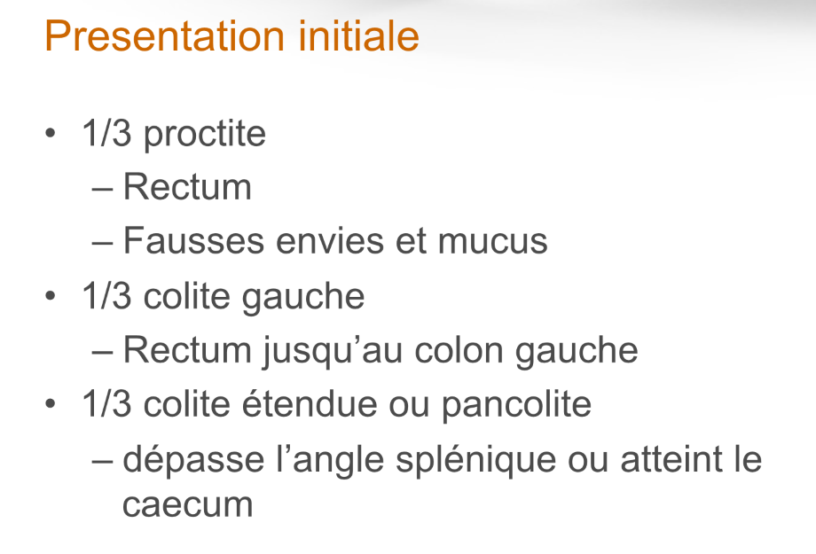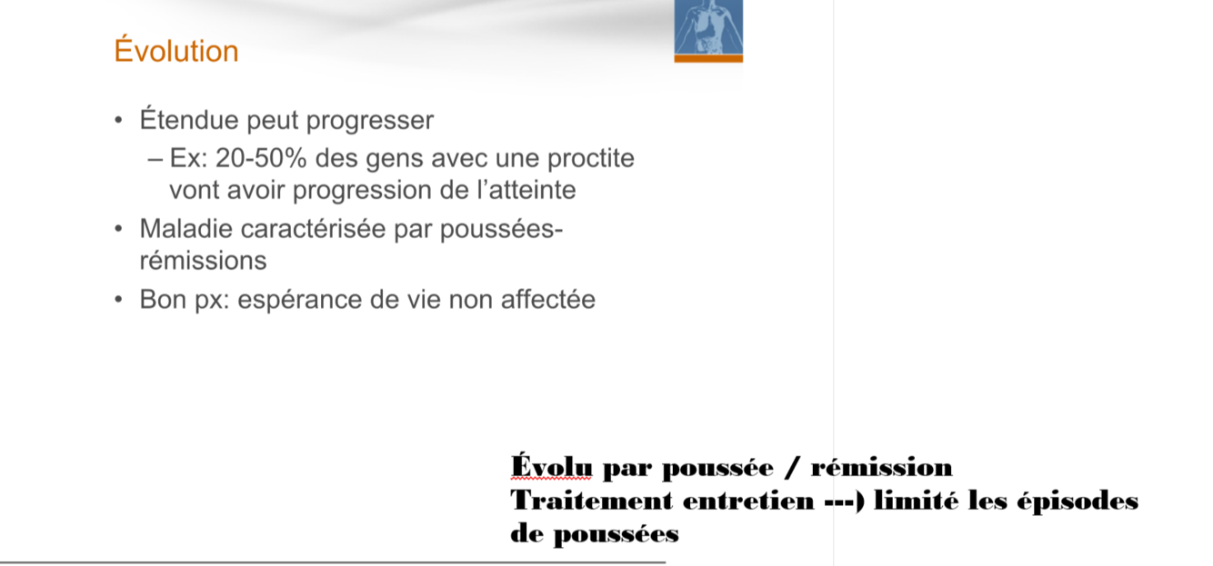 proctite –) l’Atteinte a tendance a progresser genre vers le colon?