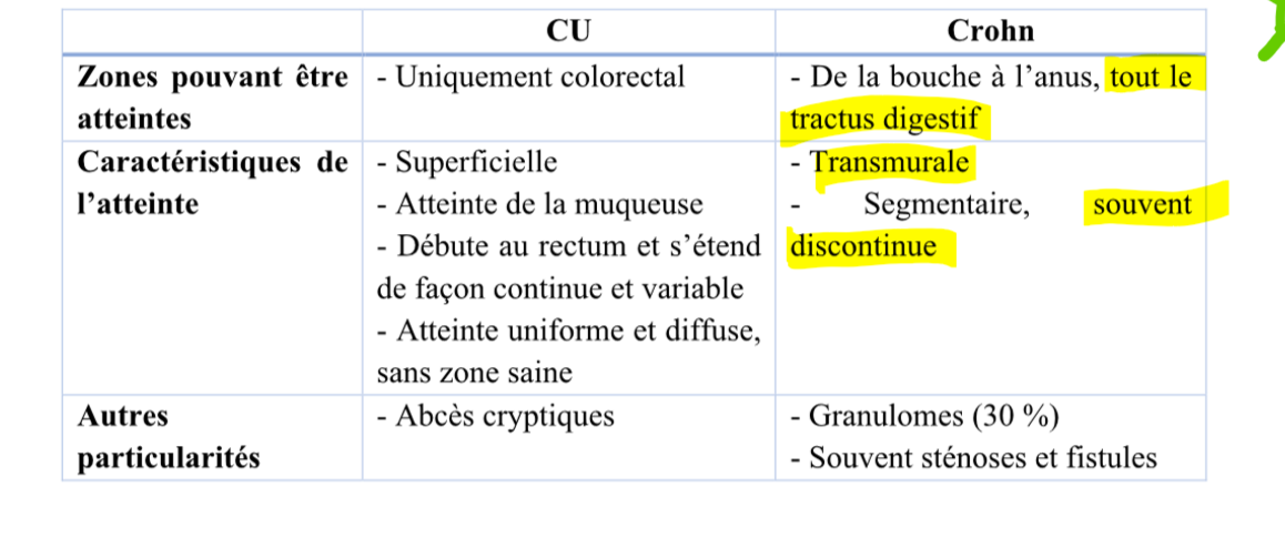 permet dans majorité des cas de dffiérencieer colite ulcéreuse de crohn