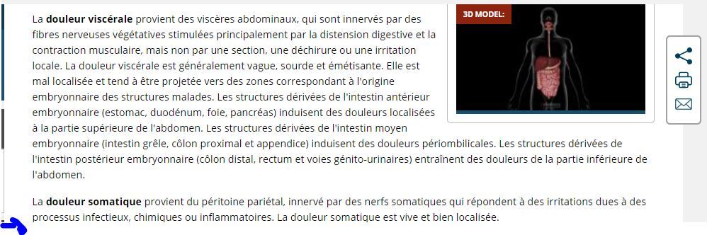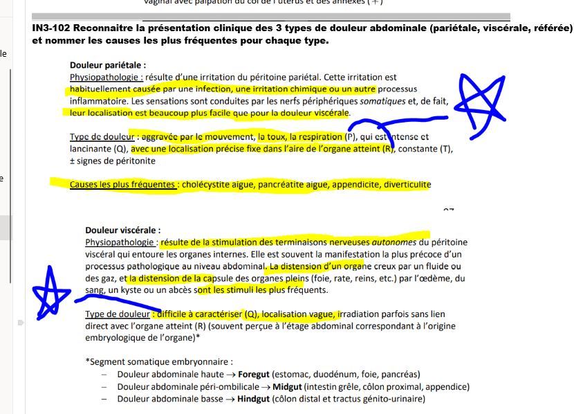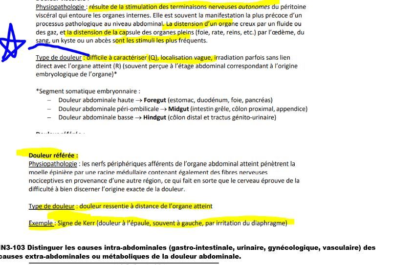 v/f dlr somatique est vague et sera souvent se;on une étage de l,abdomen
