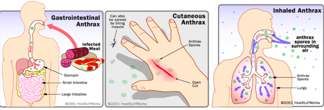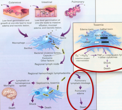 What are 2 ways that anthrax can cause death?