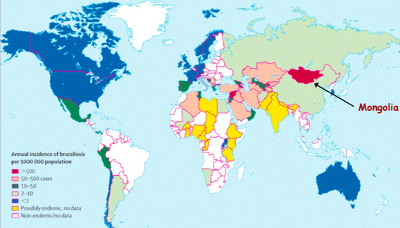 What are the epi and transmission of Brucella spp.?