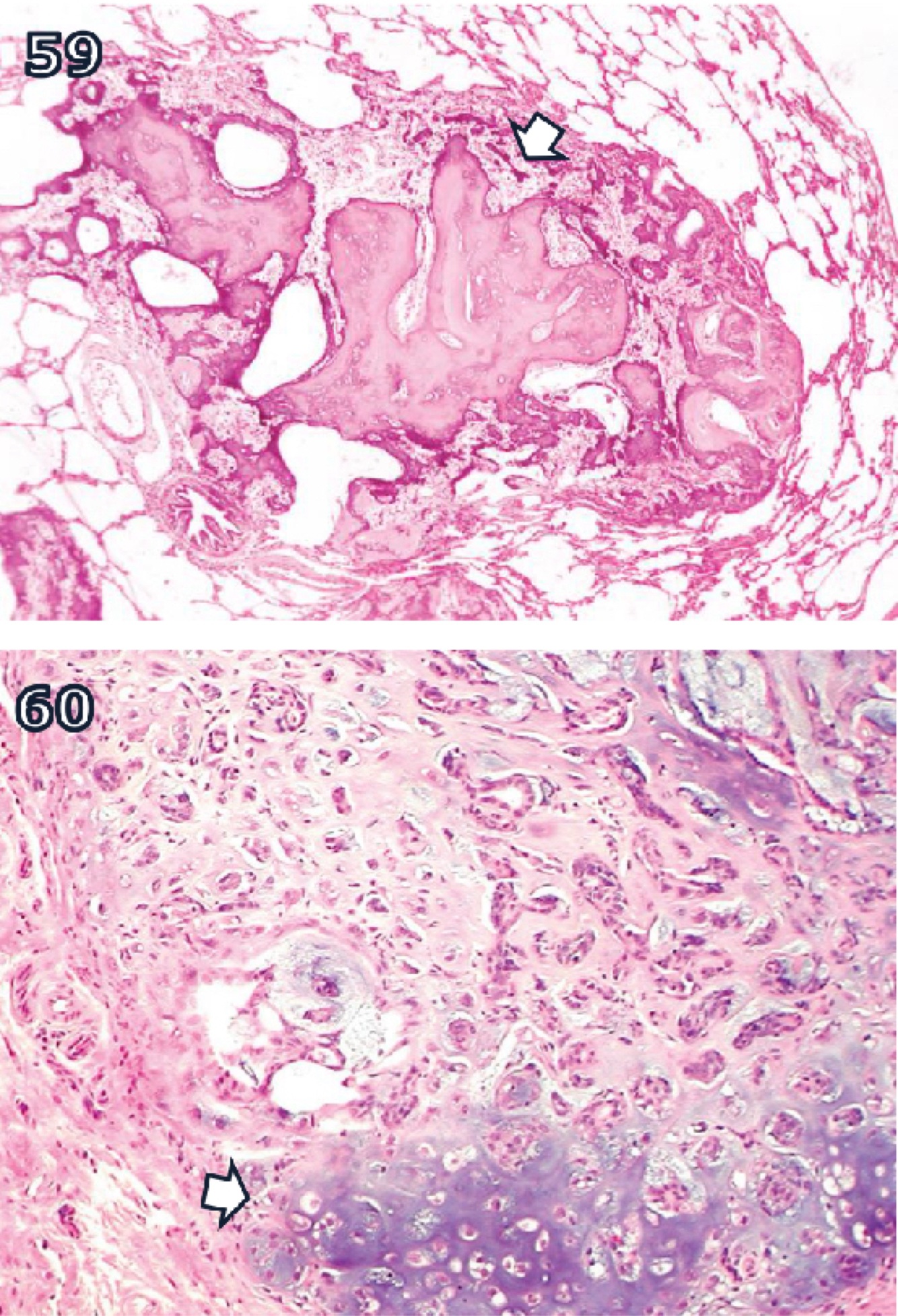 nodular deposits of cartilage + bone may form bulk of canine mixed mammary tumor