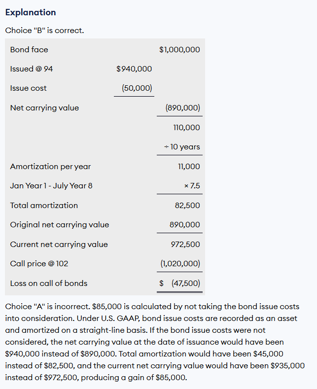 On January 1, Year 1, David Corp. issued 1000 of its $1,000 bonds at 94. David Corp. uses U.S. GAAP. The bonds mature in 10 years but are callable at 102 any time after issuance. On January 1, Year 1, David incurred bond issue costs of $50,000. On July 1, Year 8, David called all of the bonds and retired them. Assuming that bond discount and issue costs were amortized using the straight-line method, what amount of pretax loss would David report from this extinguishment of debt?