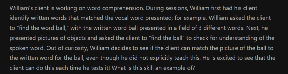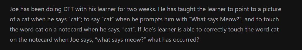 The learner has shown transitivity and listener responding