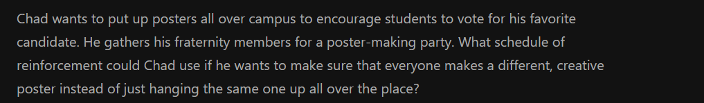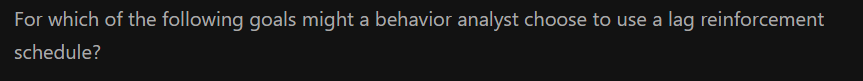 Lag reinforcement schedule