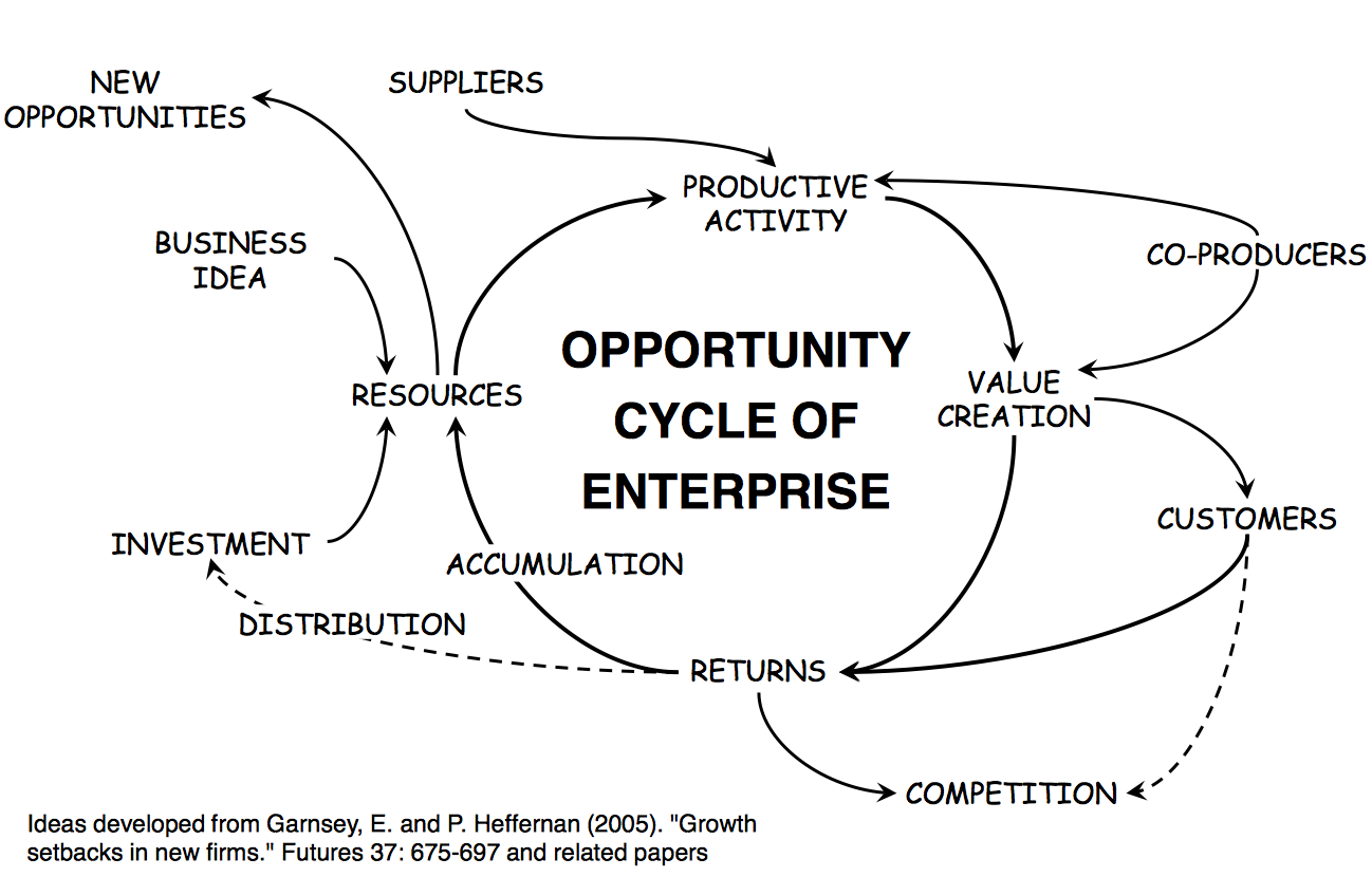 Coupled with suppliers (raw material and parts to make product) this allows productive activity (making the thing) to take place, which creates value (business model and marketing).