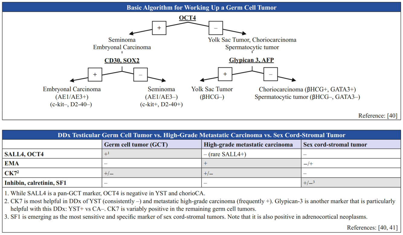 IHC - inhibin positive, D2-40, and brachyury (cytoplasmic)