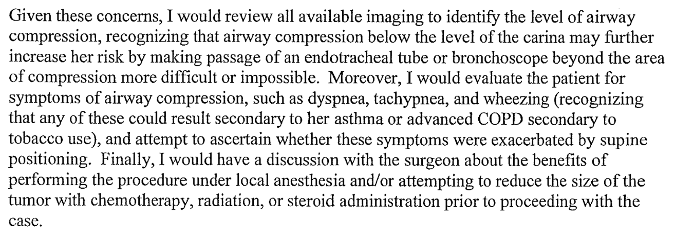 Explain your overall method for evaluating severity of ant mediastinal mass preop?