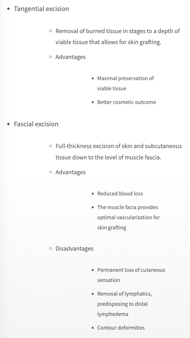 Diff between tangential vs fascial excision for burn surgery?
