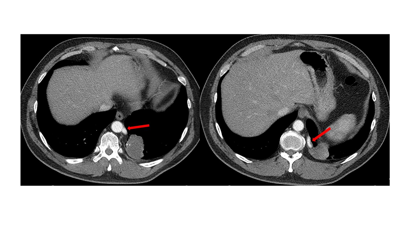 bronchopulmonary sequestration (arrow points to it’s separate blood supply from aorta)