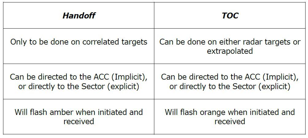 When an external handoff or TOC cannot be accomplished due to system errors, a verbal handoff must be executed. Upon completion of the verbal handoff, use the ‘Release To’ feature, found within the TOC menu, to transfer the CJS to the receiving controller. This will allow for flight deletion and de-correlation within CAATS.