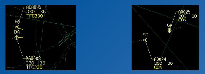 Traffic warnings - initiated 60 seconds from potential confliction (vertical or horizontal). One minute PTLs are added to the targets and it will say TFC on the data tags and a traffic warning will sound on the speaker. Also, the PPSs will change to wagon wheels