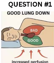 When a patient lies on one side, more blood flow goes to the lower lung.