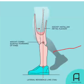 c. Prosthetic knee set too far anterior to the TKA line