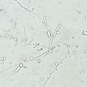 You can see the hyphal element (strings… aka spaghetti and meatball appearance)