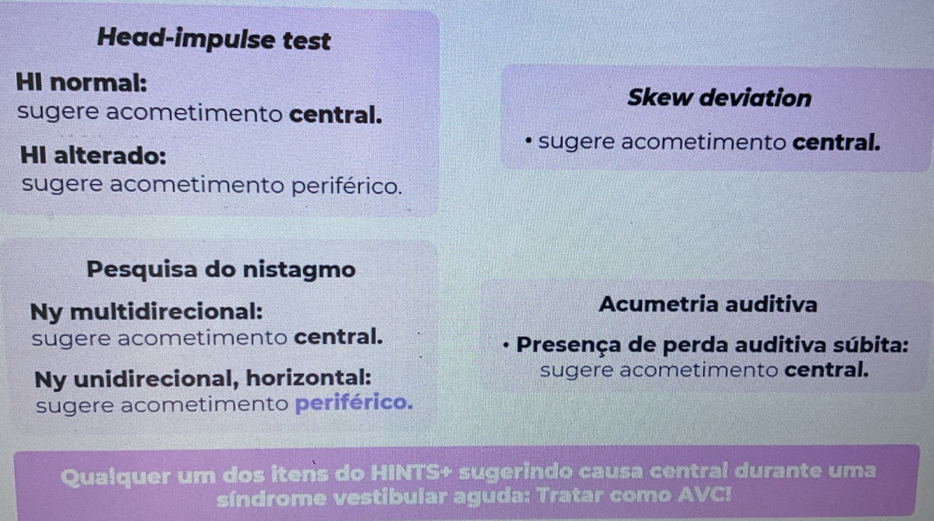 Sinais de acometimento central na vestibulopatia