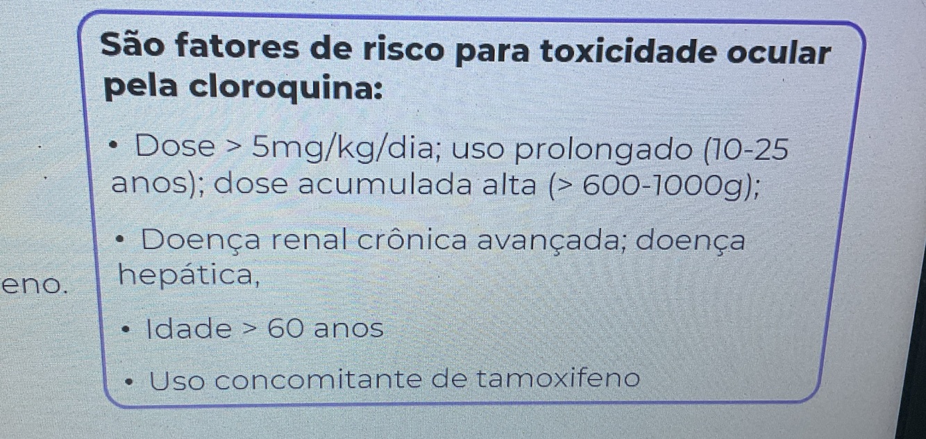 Fatores de risco toxicidade ocular pela cloroquina