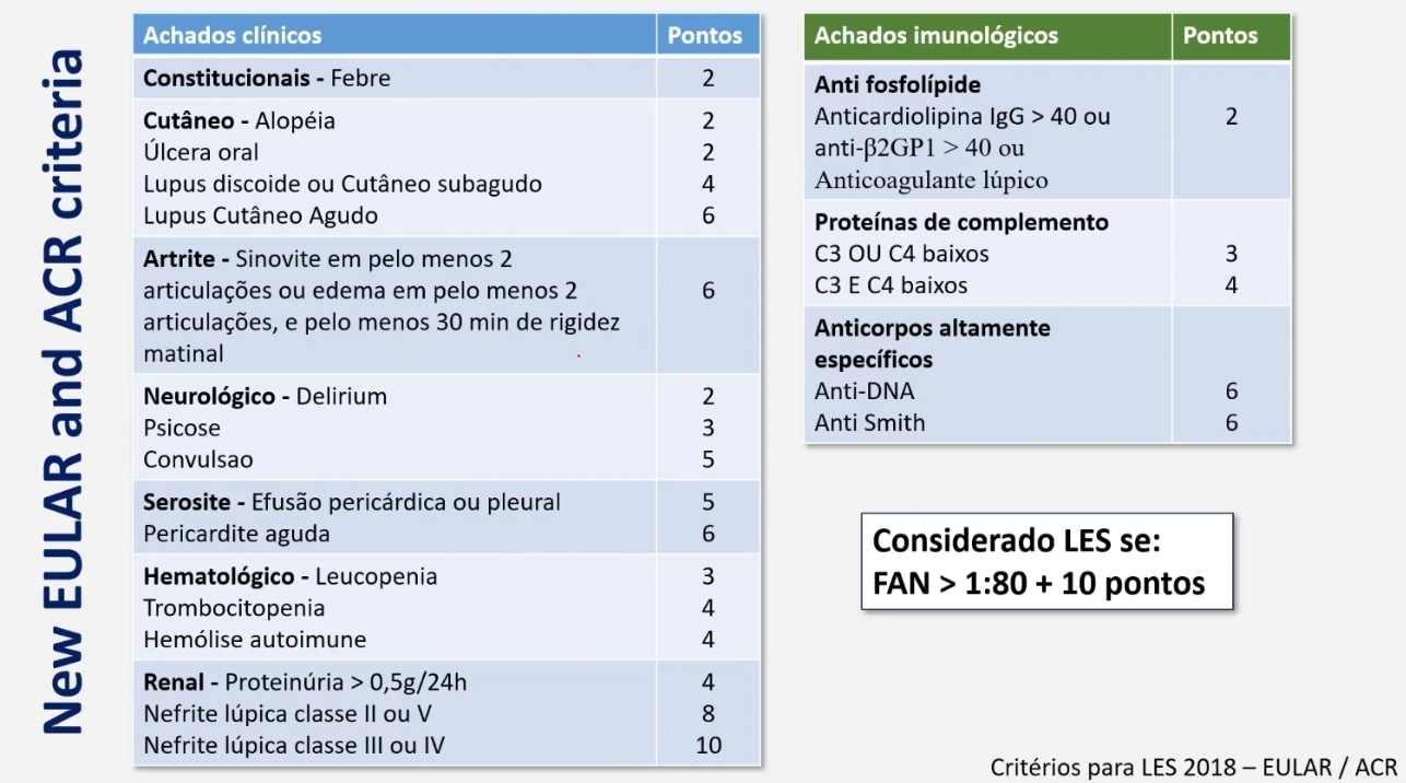 Quais os critérios diagnósticos de LES?