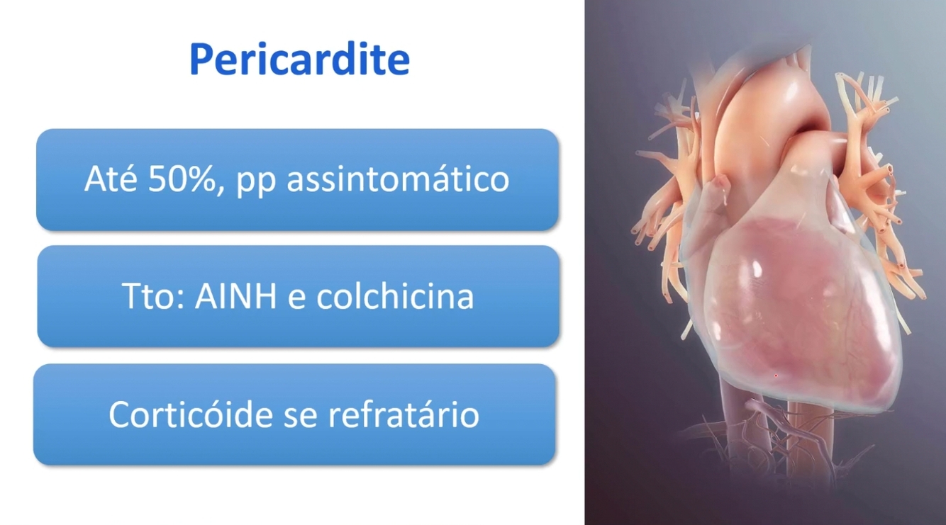 Quais as características da pericardite no LES?