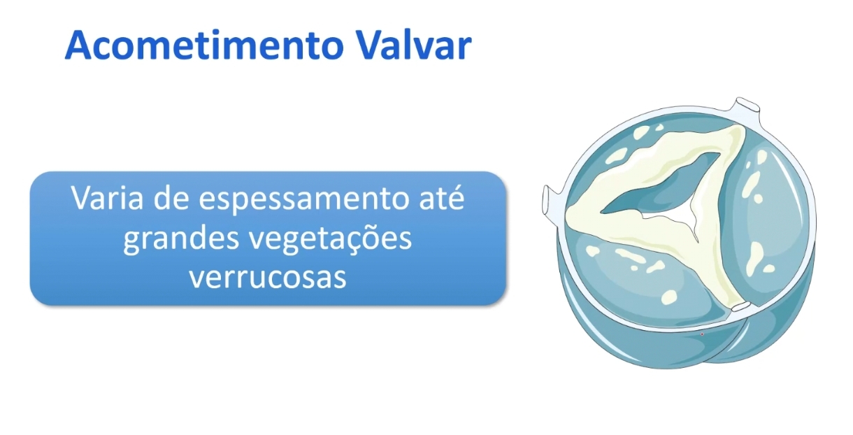 Como é o acometimento valvar no LES?