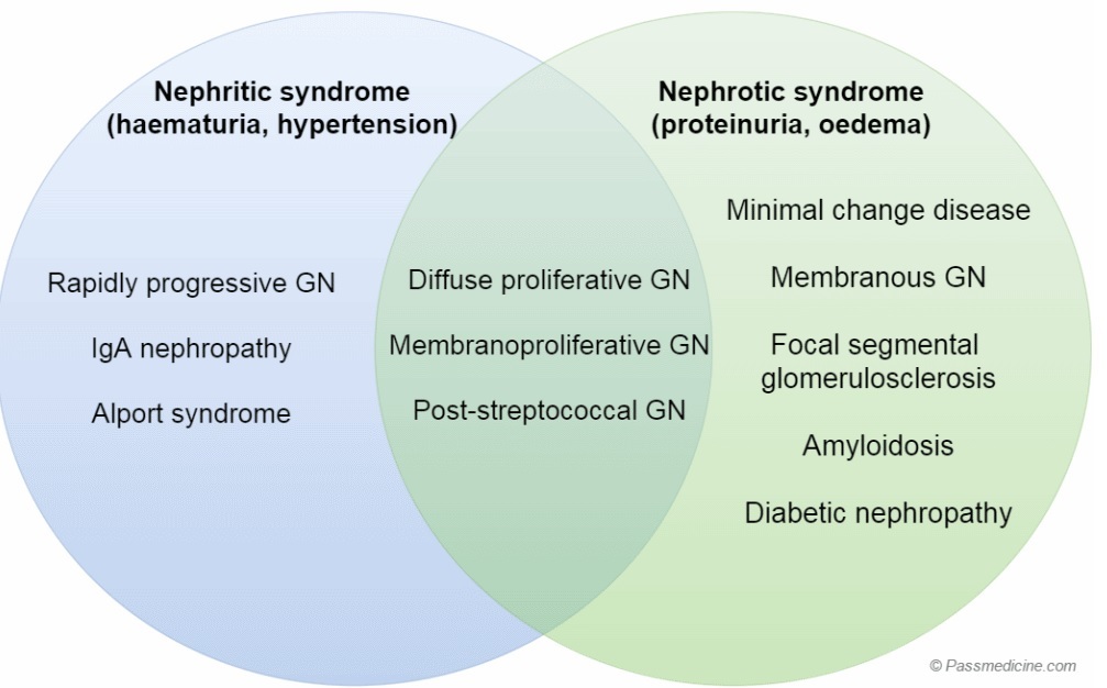Loss of antithrombin-III, proteins C and S and an associated rise in fibrinogen levels predispose to thrombosis. Loss of thyroxine-binding globulin lowers the total, but not free, thyroxine levels.