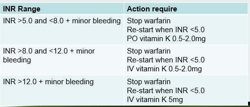 What to do when INR is too high and minor bleeding? (epistaxis, haematoma)