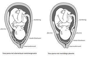 Rupture of membranes then painless bleeding, bradycardia + late decels on CTG