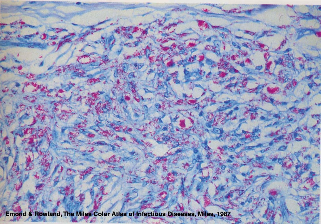 Lepromatous; the pink marks are the acid-fast M. leprae taking up carbol fucshin