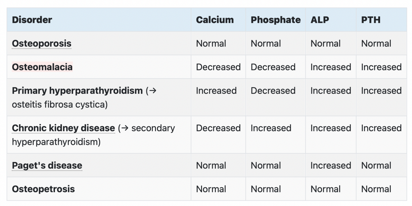 Low serum calcium, low serum phosphate, raised ALP and raised PTH?