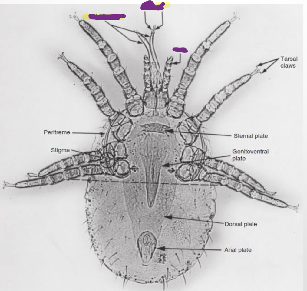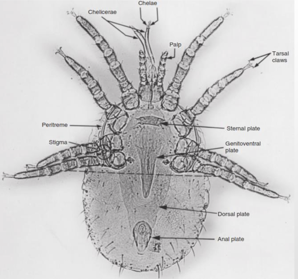 what is the chelicerae and chelae on the mesostigmatid mite?